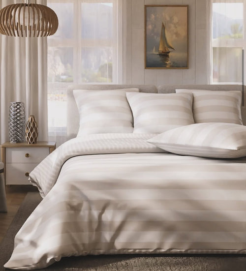 Apportez une touche d’élégance intemporelle à votre chambre avec cette housse de couette rayée réversible, signée La Case à Linge, marque créatrice de linge de maison raffiné.